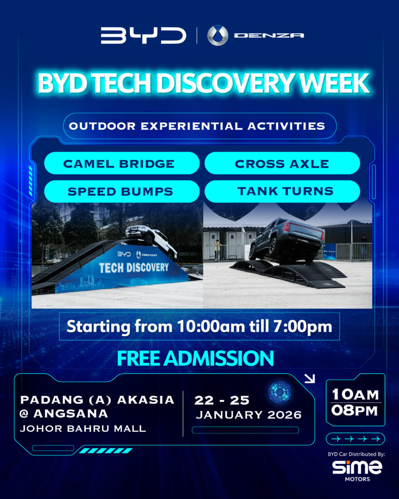 BYD Malaysia旗下豪华智能电动品牌腾势(DENZA),以及 BYD 在马来西亚的官方经销商 Sime Motors举办了这次的活动,将于 2026 年 1 月 22 日至 25 日 在 柔佛新山安莎娜购物中心 Akasia 广场(Padang (A) Akasia) 举行,为期四天。