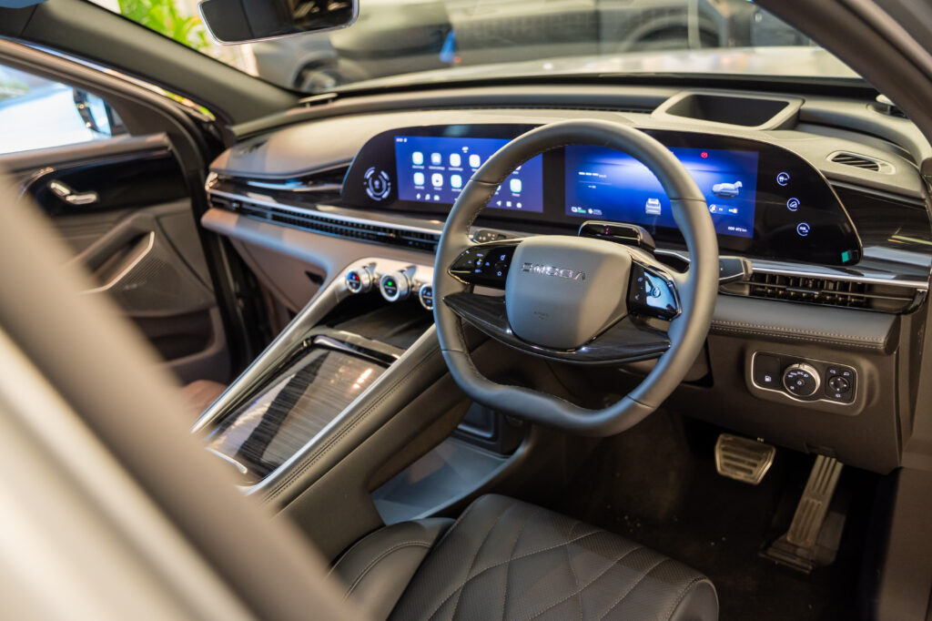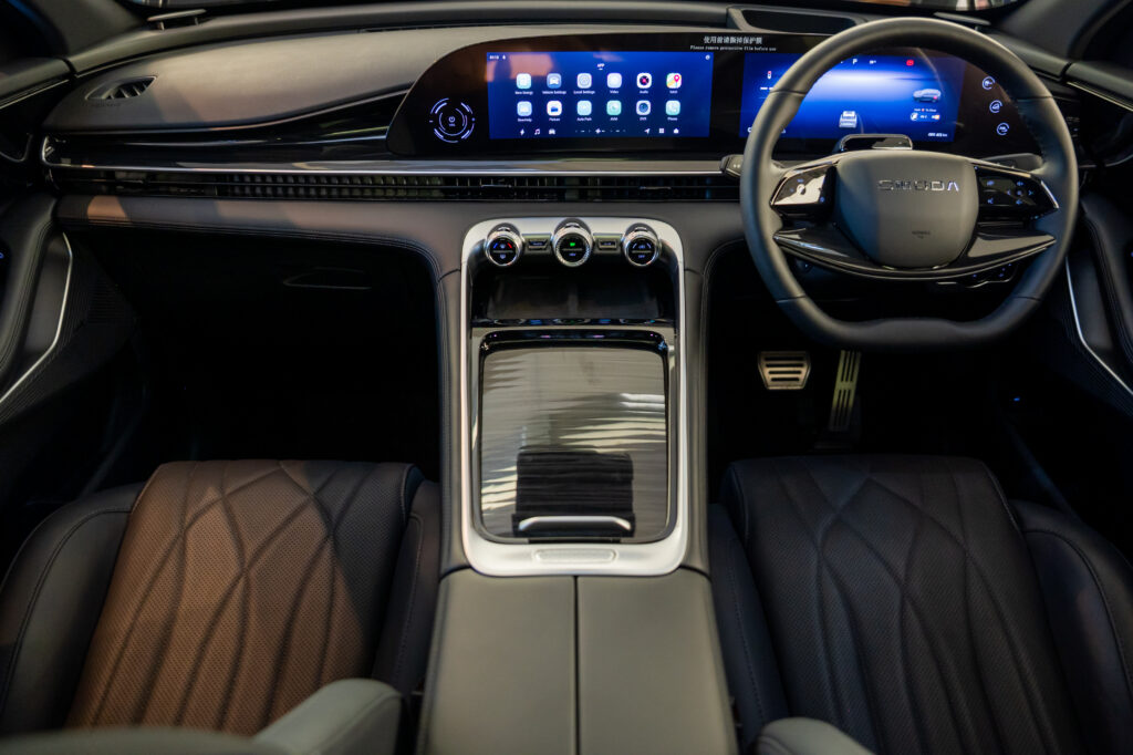 底盘方面采用前麦弗逊+后多连杆,并与汽油版相同搭载CDC主动电磁悬架,兼顾舒适与操控。车内则主打豪华与科技,延续汽油版的双12.3寸大屏、Sony音响、HUD、全景天窗及座椅通风加热等配置。