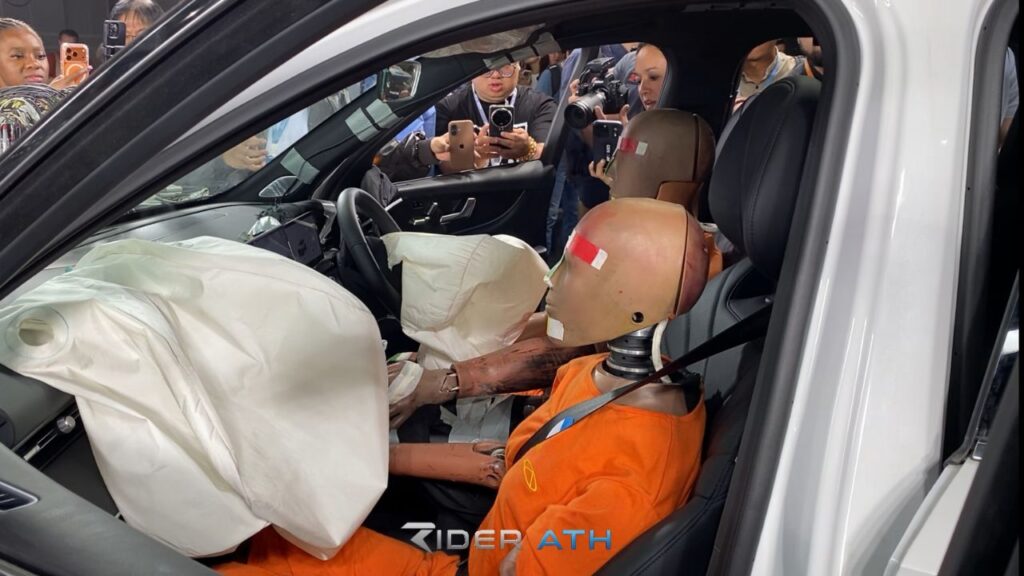 此外正面气囊以及侧气囊与气帘正常展开,安全带预紧系统正常启动。四门自动解锁并可正常开启,方便救援。油箱系统无汽油泄漏,双闪警示灯正常运作。